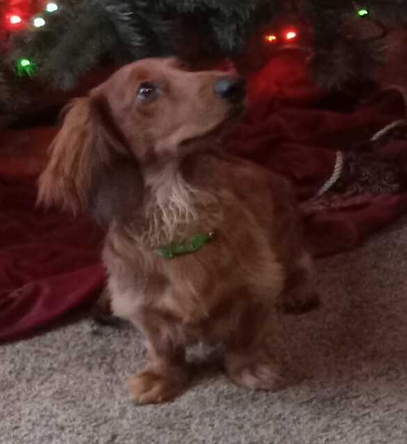 Our Dexter is 5 1/2 months old. He is the sweetest, funniest most loving fur baby ever! We have had a dachshund mix in the past and loved him with all my heart. He goes and goes and then runs to me for his nap. He shares the bed with us and out other fur baby, Snoop. He loves all food, we haven't found anything he doesn't like, so far. Whenever he gets in trouble, he rolls over on his back and waves his paw so we will scratch his belly. He sleeps on his back, twisted like a pretzel. He is so happy when we walk into the room or come home, as if we have been gone for years. He is as close to being my soul mate as our Emmett was.